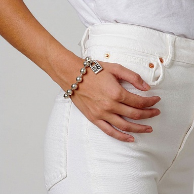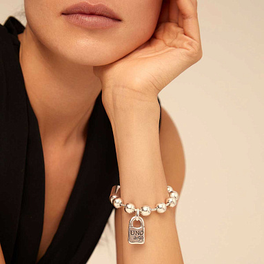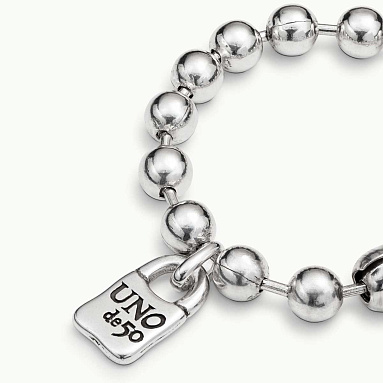 Браслет-унисекс «Snowflake» арт. PUL1215MTL0000L украшен характерными круглыми бусинами, покрытыми серебром, и одним шармом в виде фирменного символа бренда UNOde50 - замка с гравировкой. 100% ручная работа, сделанная в Испании. Идеальный подарок, который вы можете приобрести для особенного вам человека. Украшение можно дополнить подвесками на свое усмотрение.