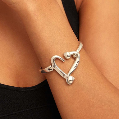 Жесткий браслет PUL2309MTL0000L из сплава ZAMAK с серебряным покрытием, выполненный в романтическом стиле из двух гвоздей, изогнутых в форме сердца - каноническая форма UNOde50.