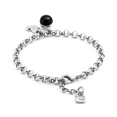 Серебряный браслет-цепочка с чёрным муранским стеклом из коллекции Ser Fascinante – великолепное украшение на каждый день. Лаконичность, выверенные формы, изысканность – черты, которые сочетает в себе эта бижутерия. Такой браслет прекрасно дополнит дневной и вечерний наряд, а также станет отличным подарком к любому поводу. Будьте готовы принимать комплименты!