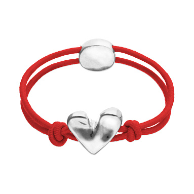Браслет выполнен из прочного текстильного шнура и дополнен металлической деталью в форме сердца из сплава ZAMAK с серебрянным покрытием. Украшение изготовлено вручную и подойдет для повседневных образов.
