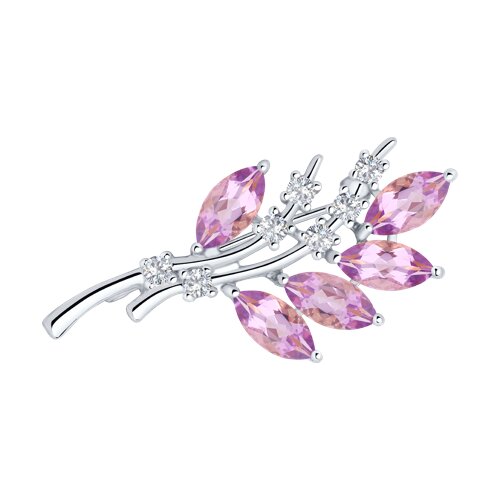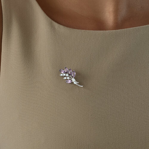 Брошь, аметист, фианит
