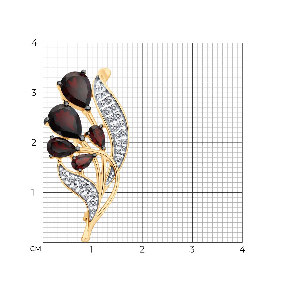 Брошь, гранат, фианит