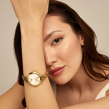 Ослепительные наручные часы SPLENDID с золотом арт. REL0145BLNORO0L из коллекции BRAVE — яркий аксессуар, предназначенный быть не только функциональной вещью, но и потрясающим украшением. Изделие целиком, включая ремешок и корпус, изготовлено из уникального сплава ZAMAK, позолота которого сверкает так ярко, что сразу же привлечет внимание к вашему изящному запястью. Дополнительные элементы, украшающие циферблат, перекликаются с дизайном кольца арт. ANI0797ORO000, что позволяет собрать гармоничный комплект аксессуаров. Надежный кварцевый механизм высокого качества прослужит вам долгие годы.