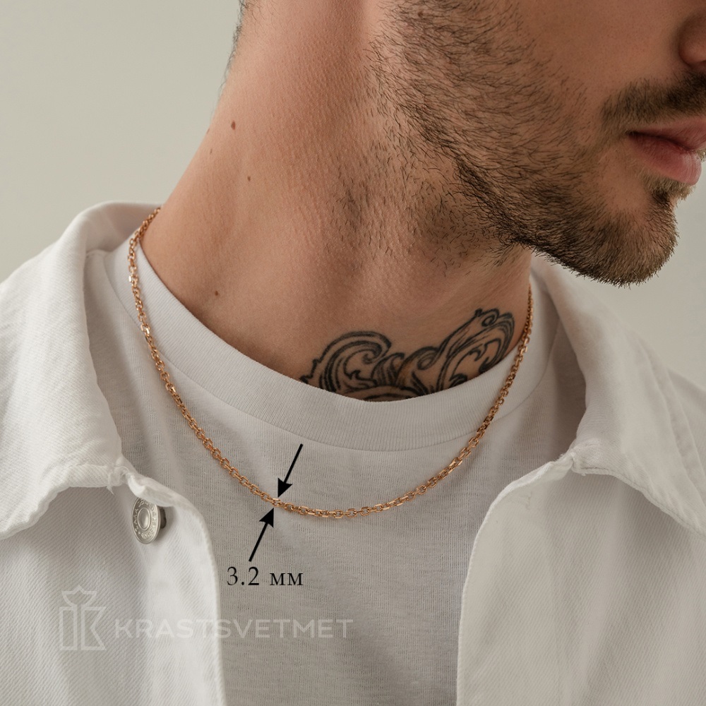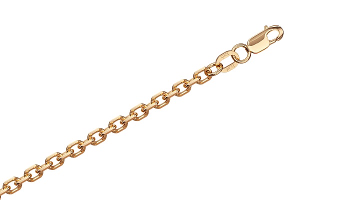 Цепь золотая 585 плтение якорь с алмазной гранью, пустотелая (облегченная). «Якорное» плетение со звеньями овальной формы. Цепь хороша своей универсальностью. Выполненные из тонких мелких звеньев, изделия выступают идеальным дополнением к изящным женским кулонам, массивные же модели с крупными элементами могут выступать в качестве самостоятельного аксессуара и основой для мужского медальона. Украшение требует аккуратного и бережного обращения. Снимайте украшение, когда выполняете работу по дому, занимаетесь спортом, принимаете душ или ванну, посещаете сауну, бассейн, а также перед сном. Избегайте жестких касаний ювелирного изделия с твердыми поверхностями и предметами.