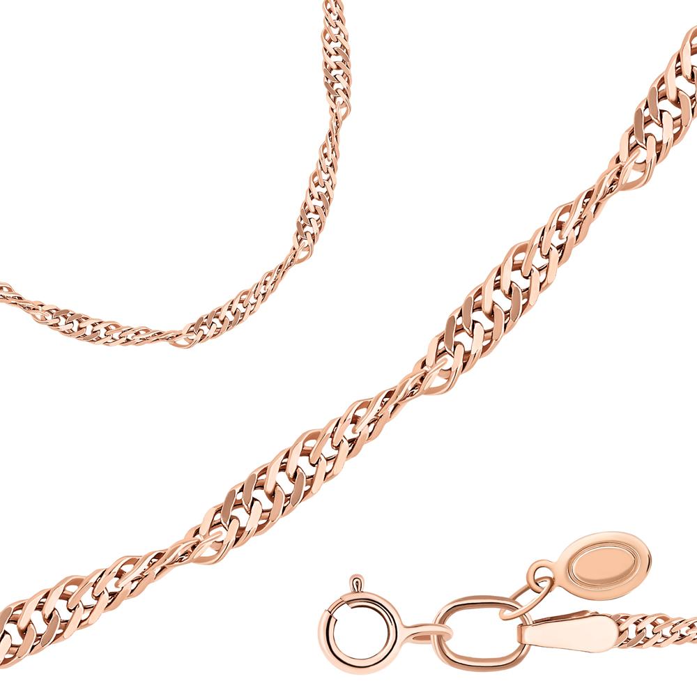«Сингапур» — плетение на основе двойного панцирного плетения. Звенья в цепи соединены в сложную спиралевидную структуру, обеспечивая потрясающий блеск от солнечных лучей под разным углом.