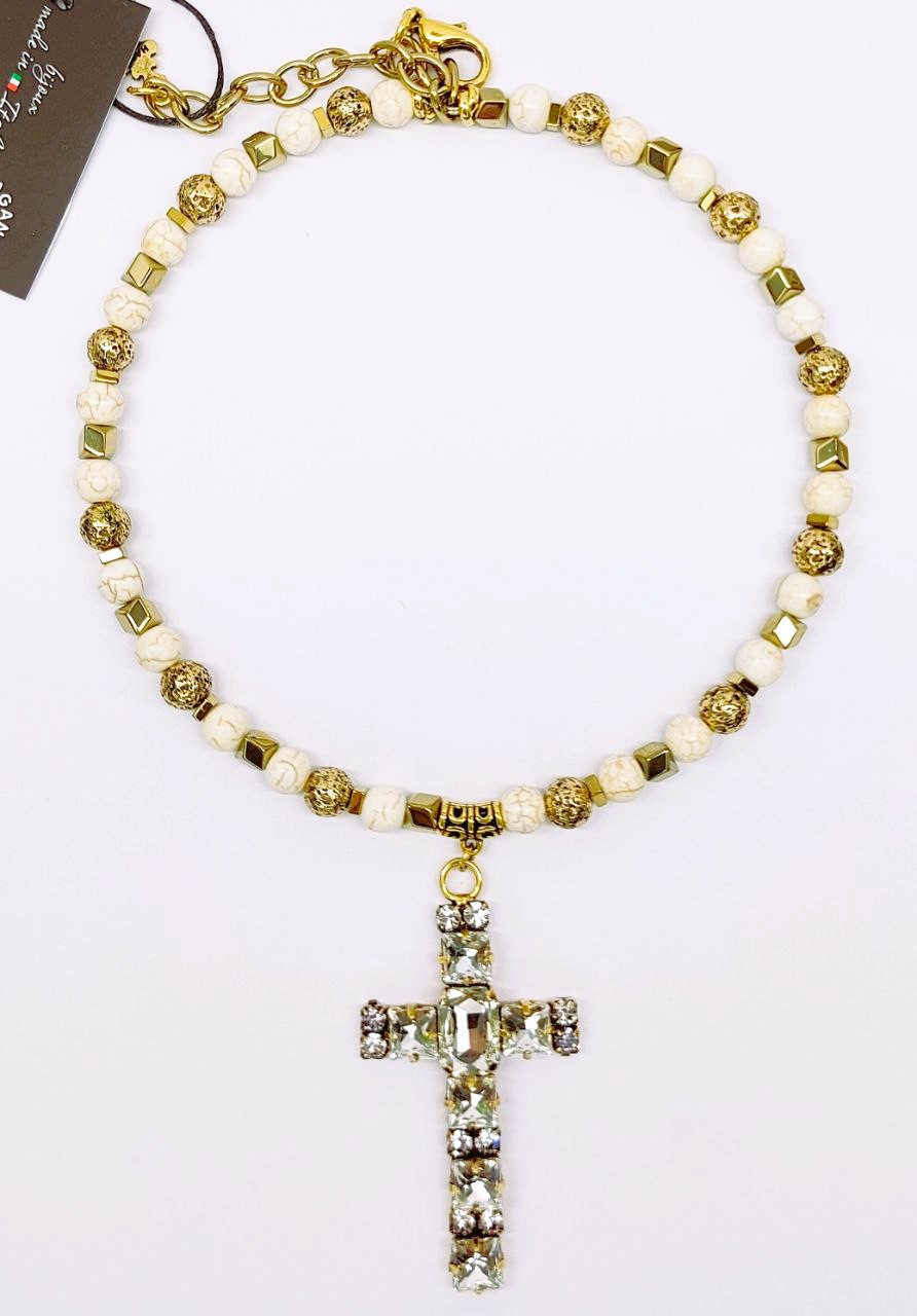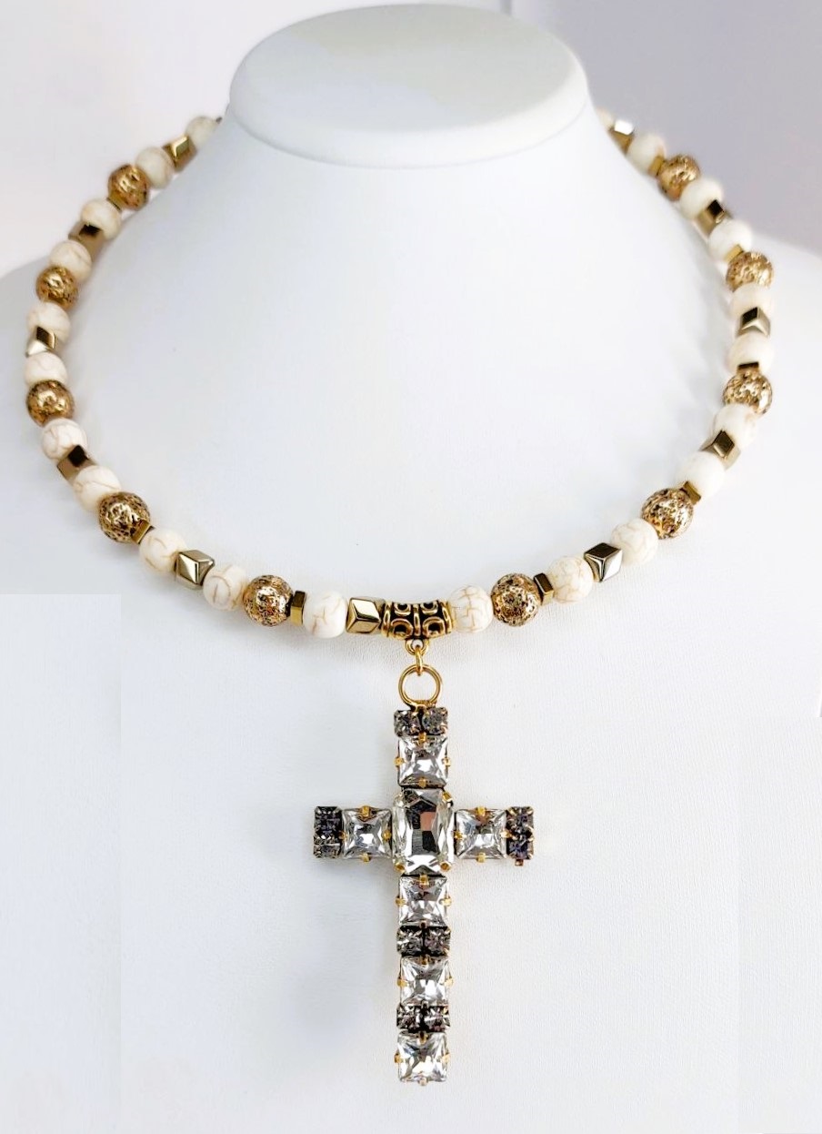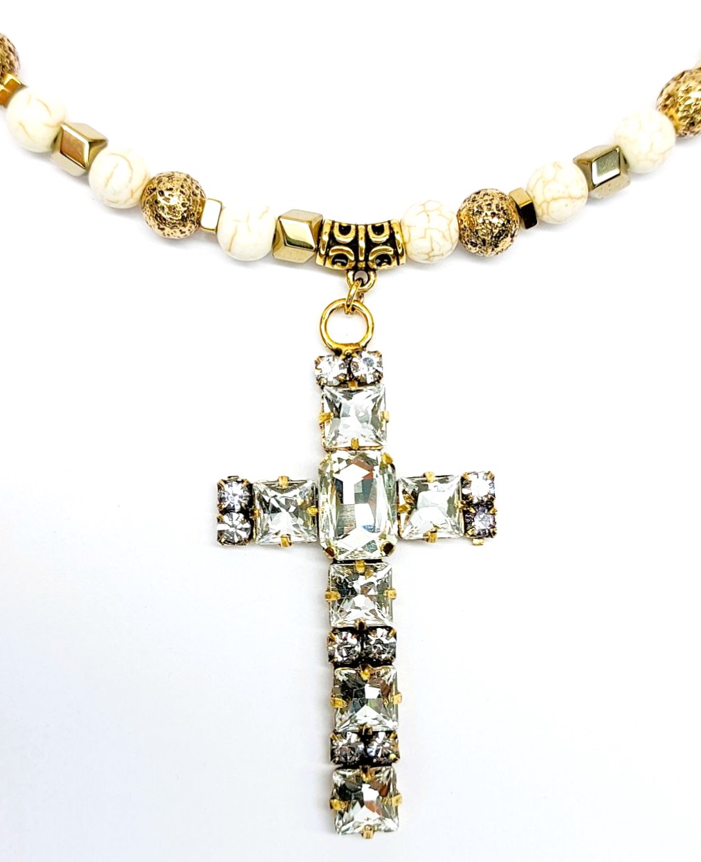 Чокер, вулканическая лава, гематит, кристалл swarovski, ракушечник