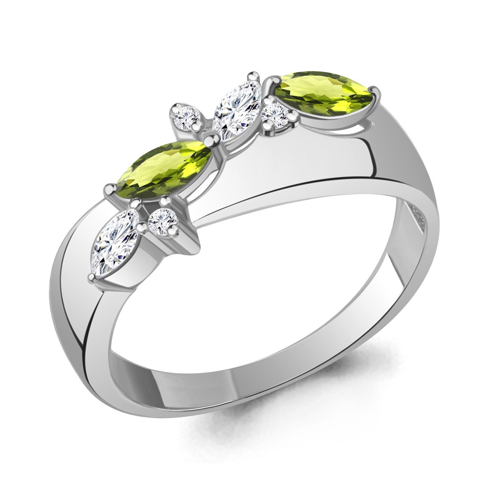 Кольцо, фианит, хризолит
