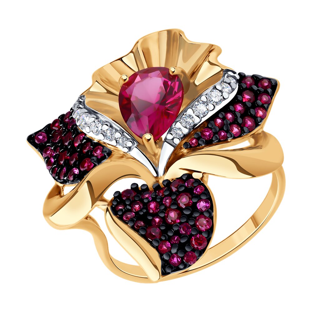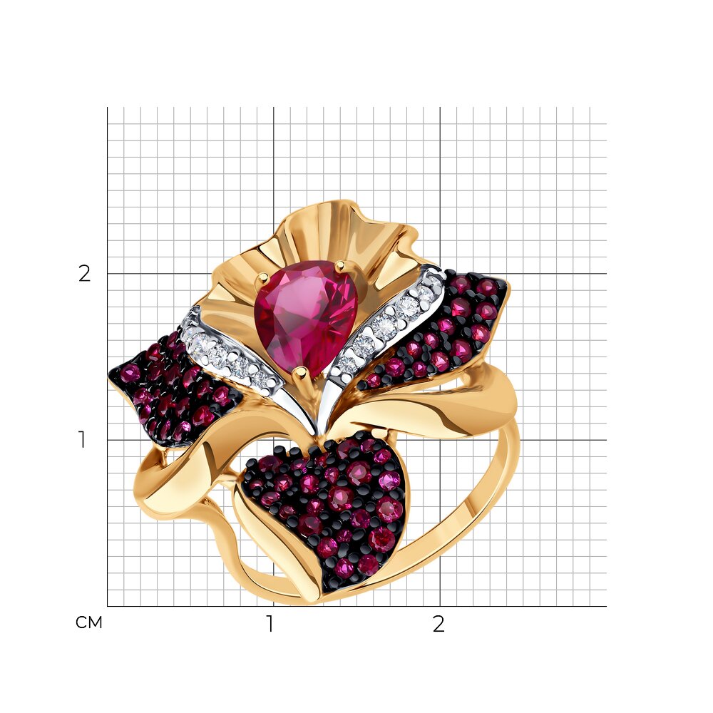 Кольцо, корунд рубин синт., фианит