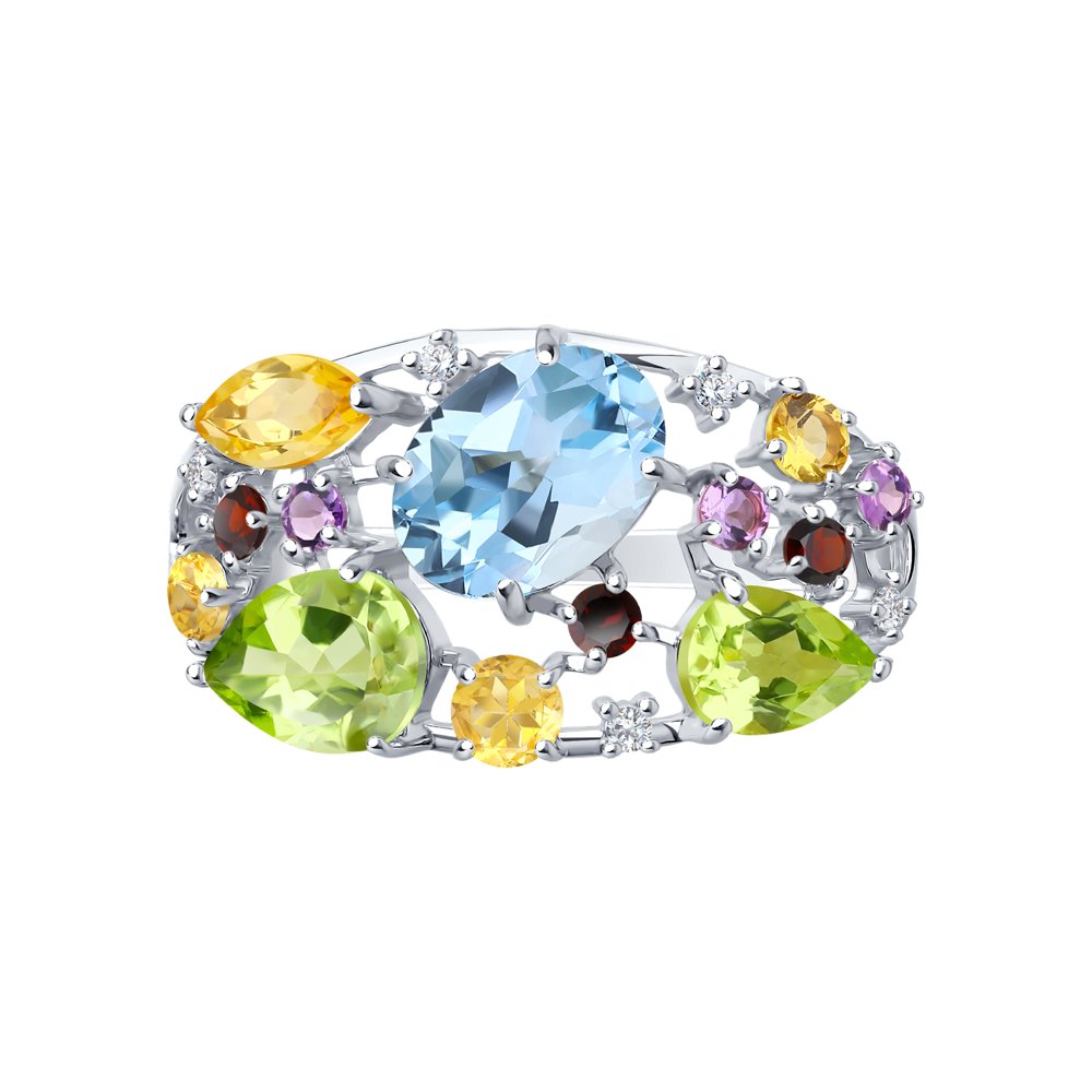 Кольцо, аметист, гранат, топаз, фианит, хризолит, цитрин
