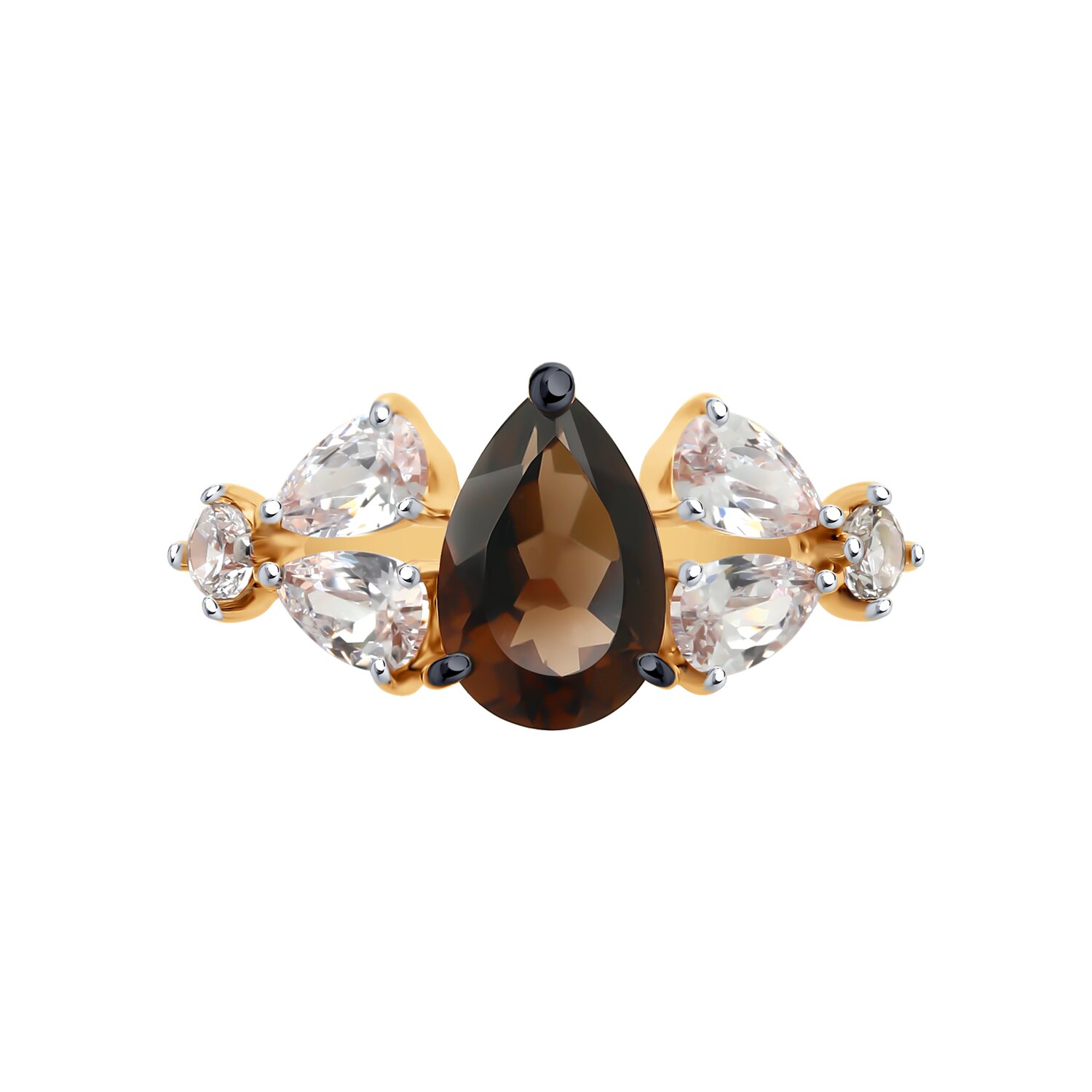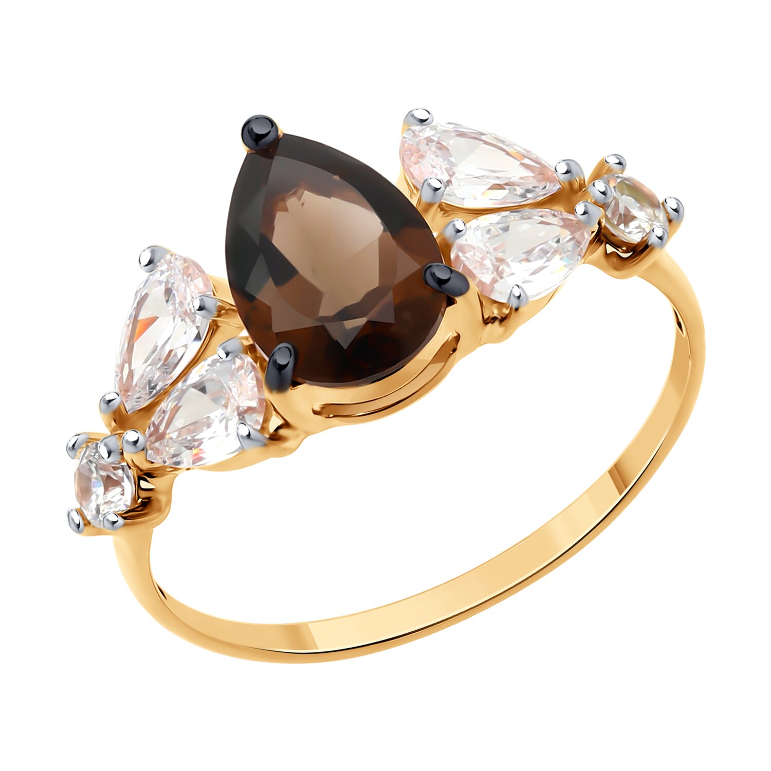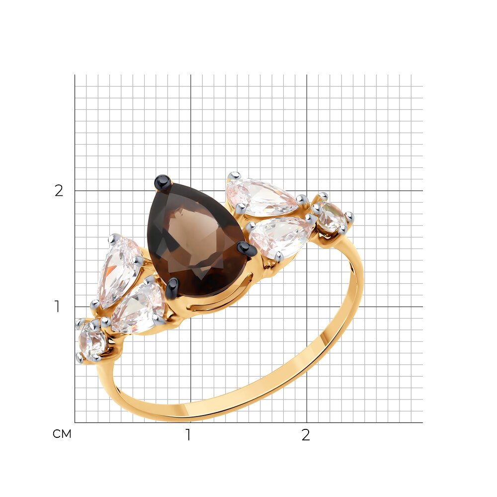Кольцо, раух топаз, фианит