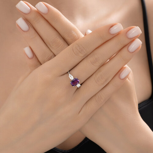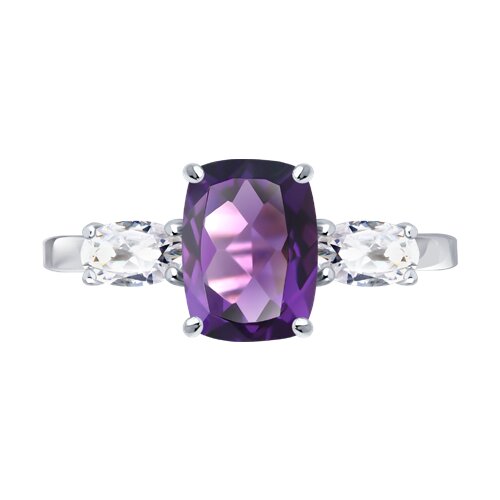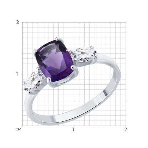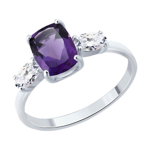 Кольцо, аметист, фианит