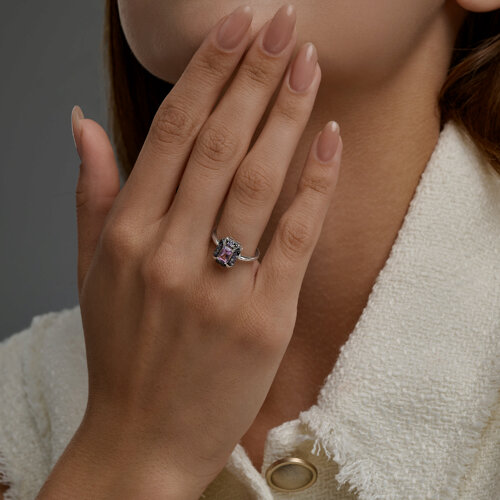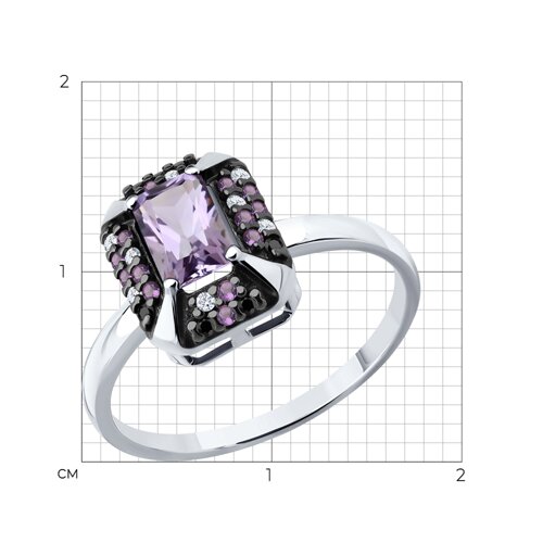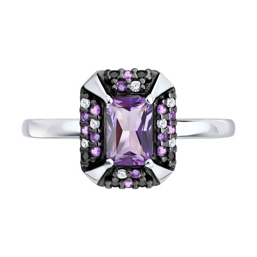 Кольцо, аметист, фианит