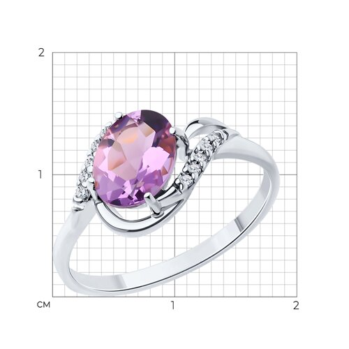 Кольцо, аметист, фианит
