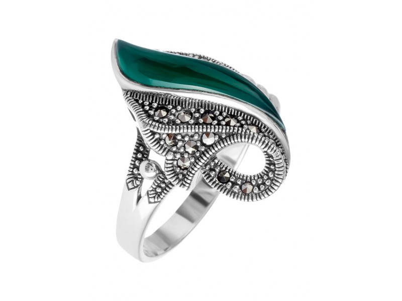 Кольцо, марказит, хризопраз
