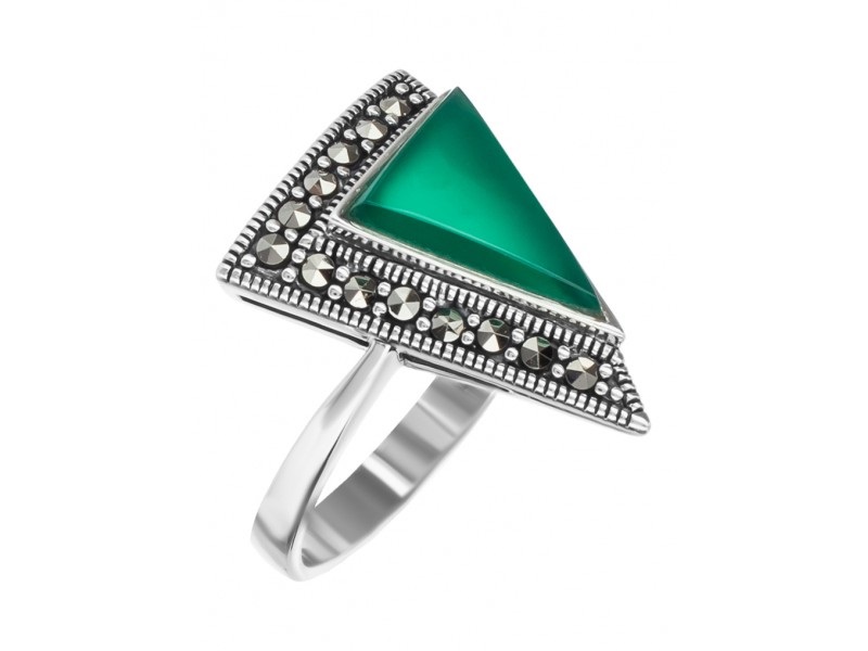 Кольцо, марказит, хризопраз