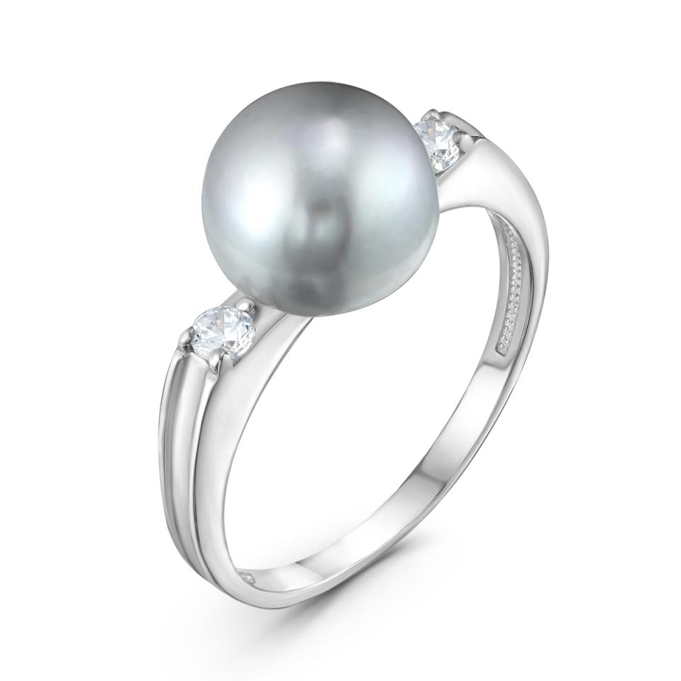 Кольцо, жемчуг культ., фианит