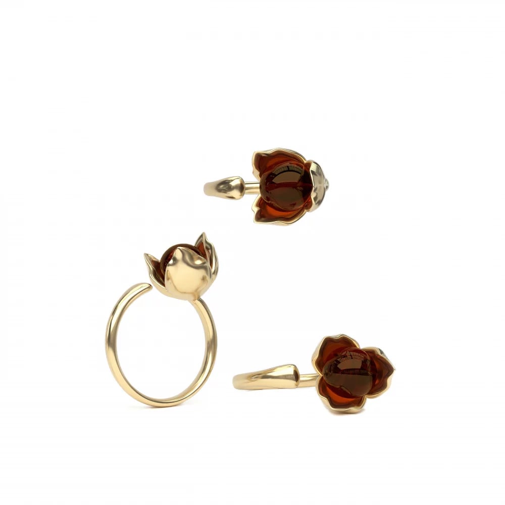 Минималистичное кольцо R10001ZK из серебра 925 пробы, покрытие золочение с натуральным янтарем