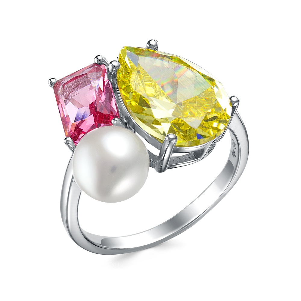 Кольцо, жемчуг культ., ювелирное стекло