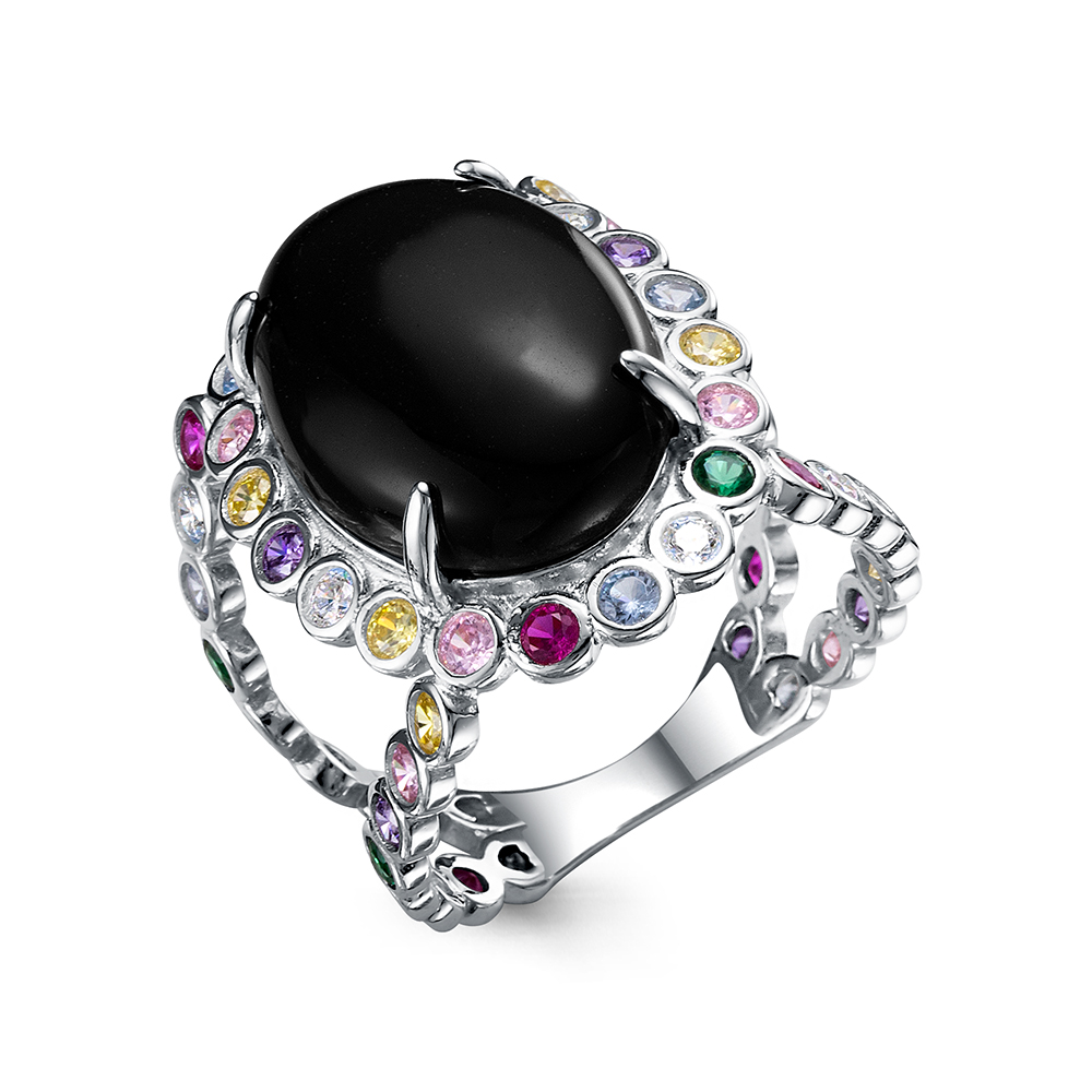 Кольцо, кубический цирконий, оникс