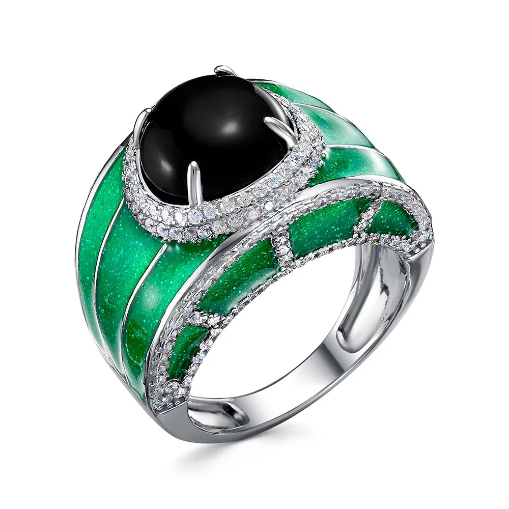 Кольцо, кубический цирконий, оникс, эмаль