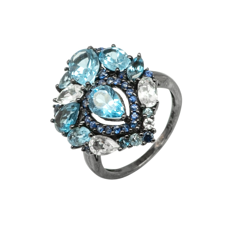 Кольцо, сапфир, топаз