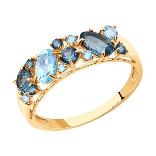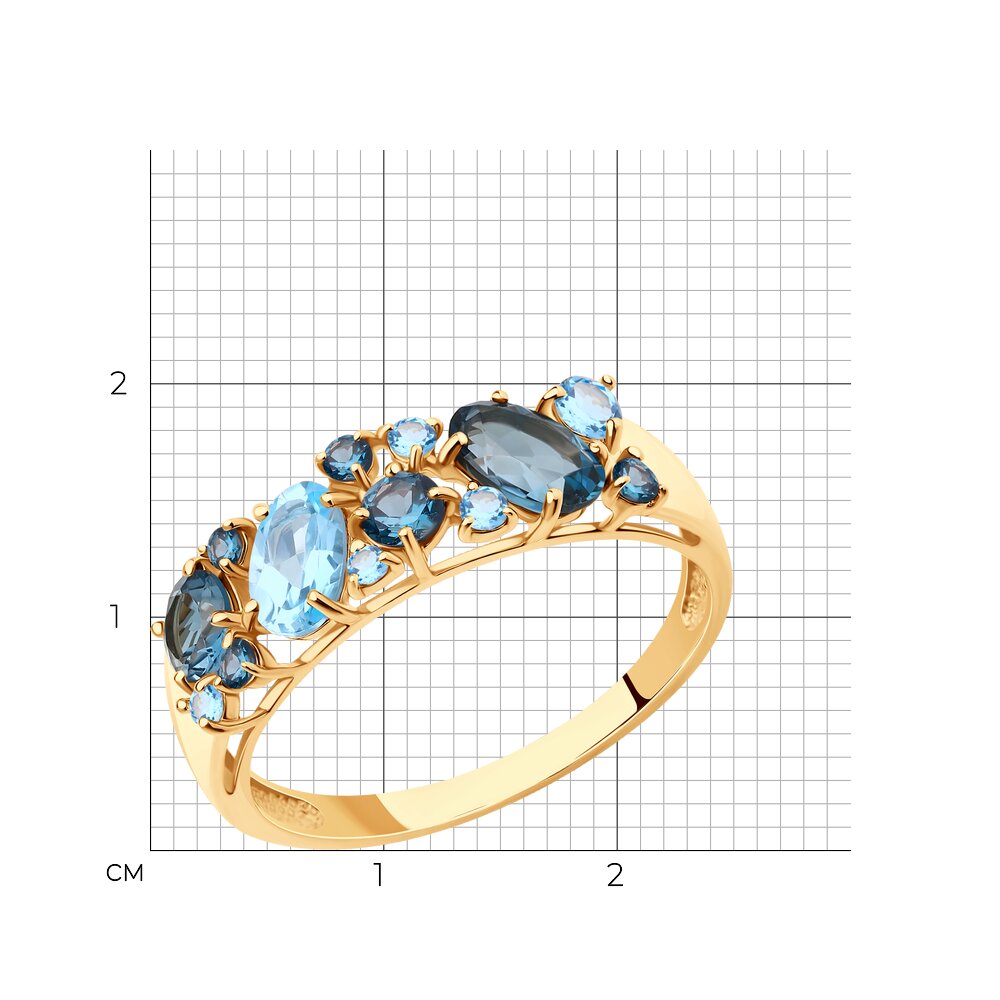 Кольцо, топаз, топаз лондон, фианит