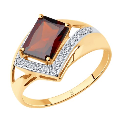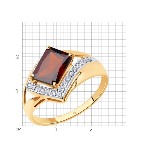 Кольцо, гранат, фианит