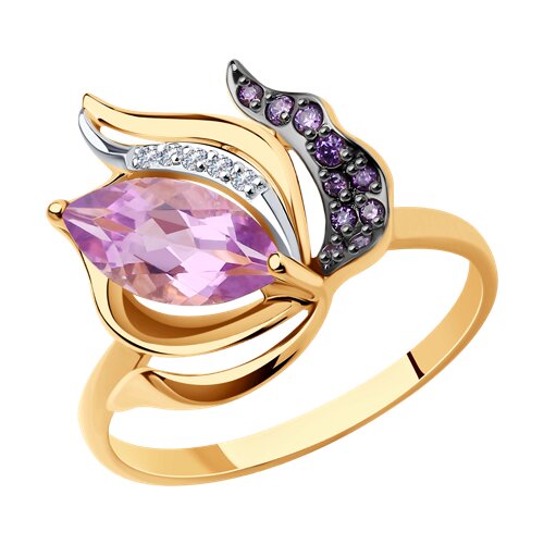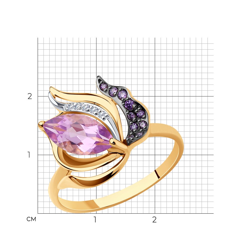Кольцо, аметист, фианит