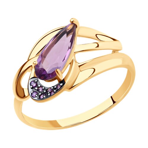 Кольцо, аметист, фианит