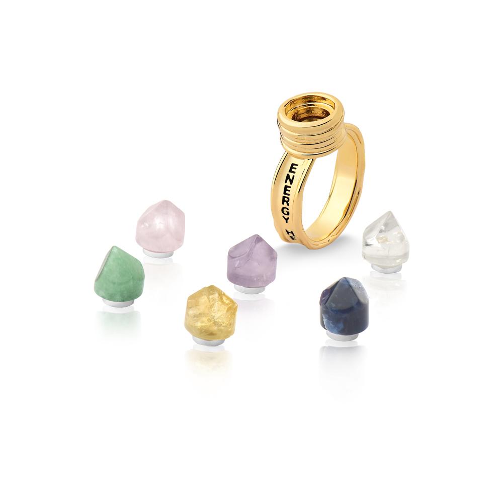Кольцо, аметист, горный хрусталь, кварц, содалит, цитрин