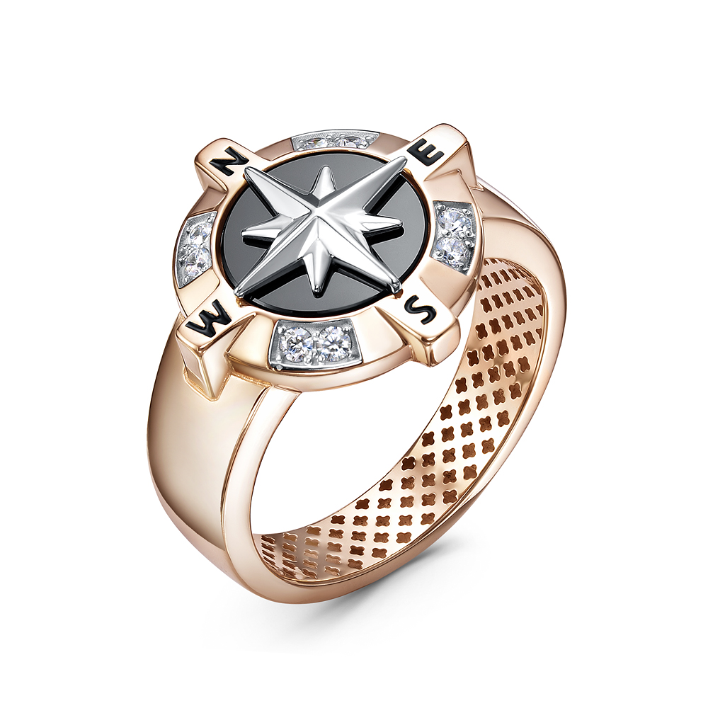 Кольцо мужское, оникс, фианит, эмаль