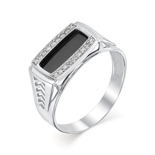 Кольцо печатка, оникс, фианит
