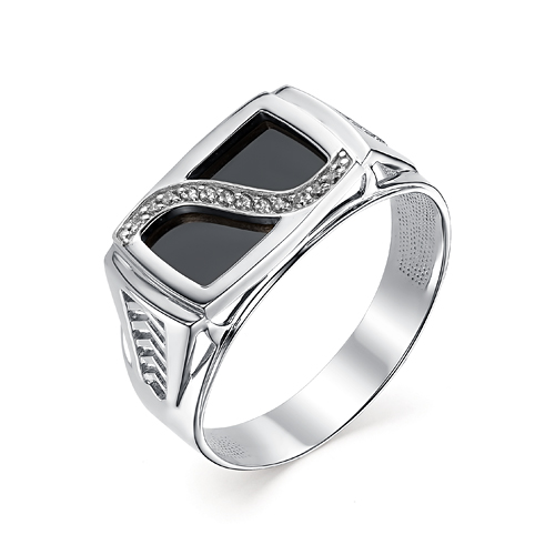Кольцо печатка, оникс, фианит