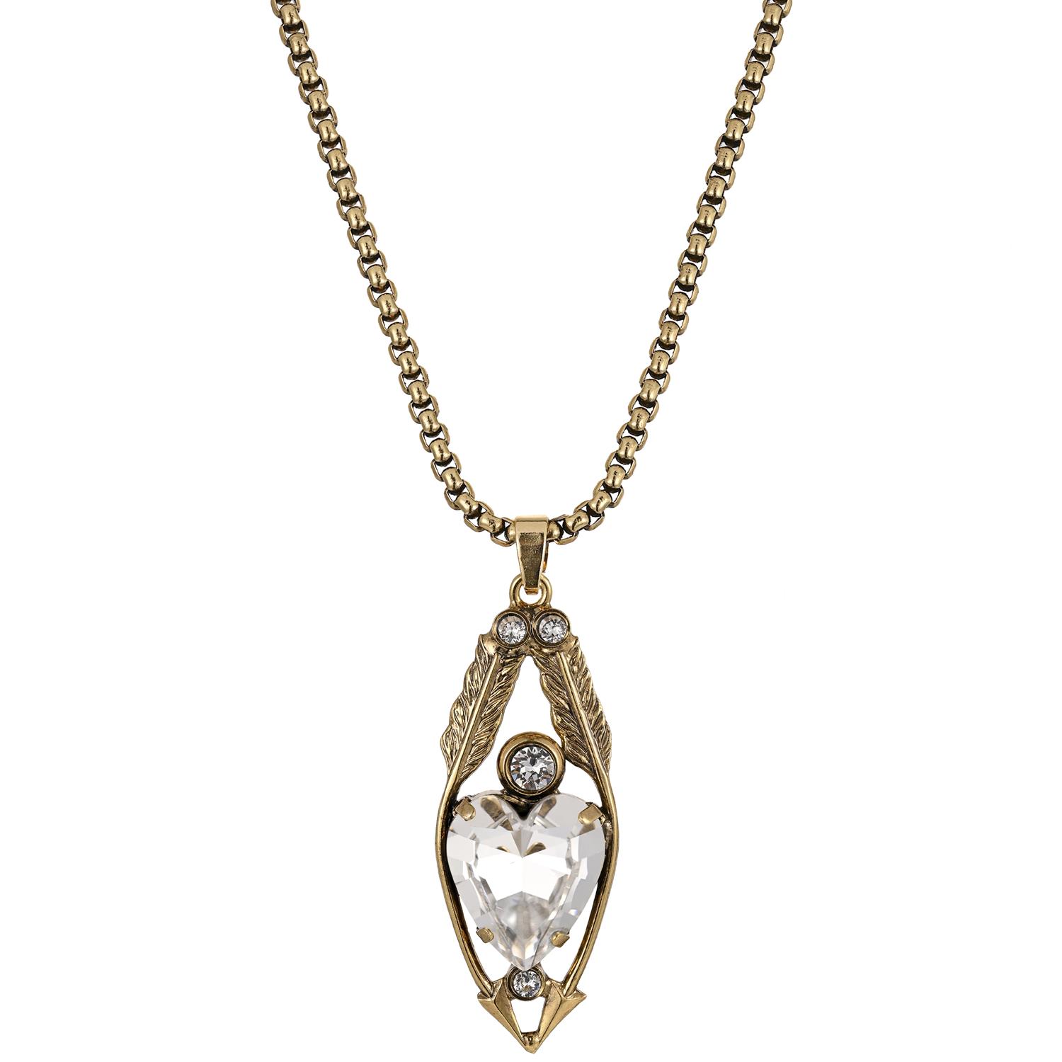 Размер цепи: длина 81 см, ширина 2 мм. Размер кулона: длина 4,5 см, ширина 1,6 см. Сплав Брасс, гальваническое покрытие позолотой, кристаллы.