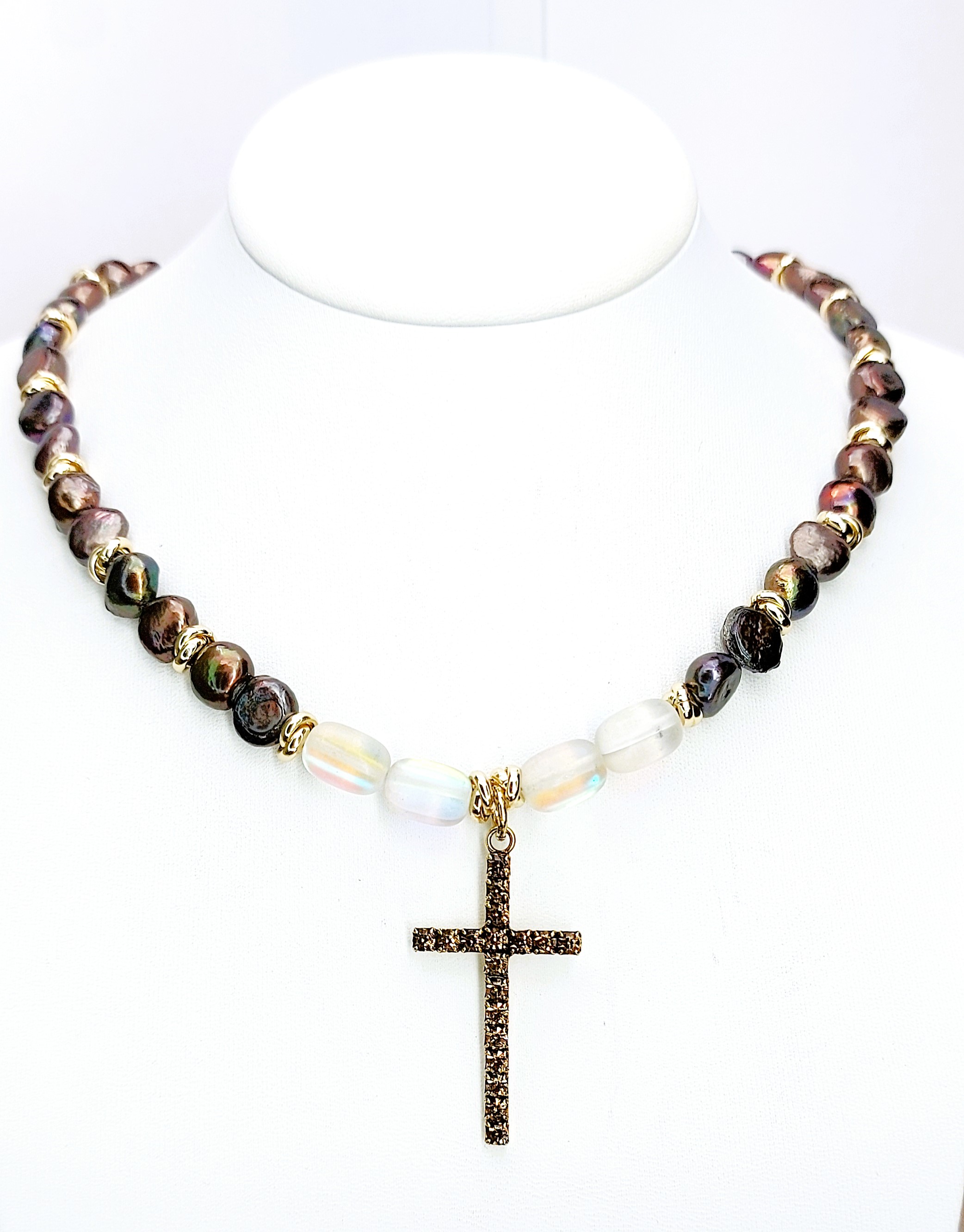 Колье, жемчуг, кристалл swarovski, опал