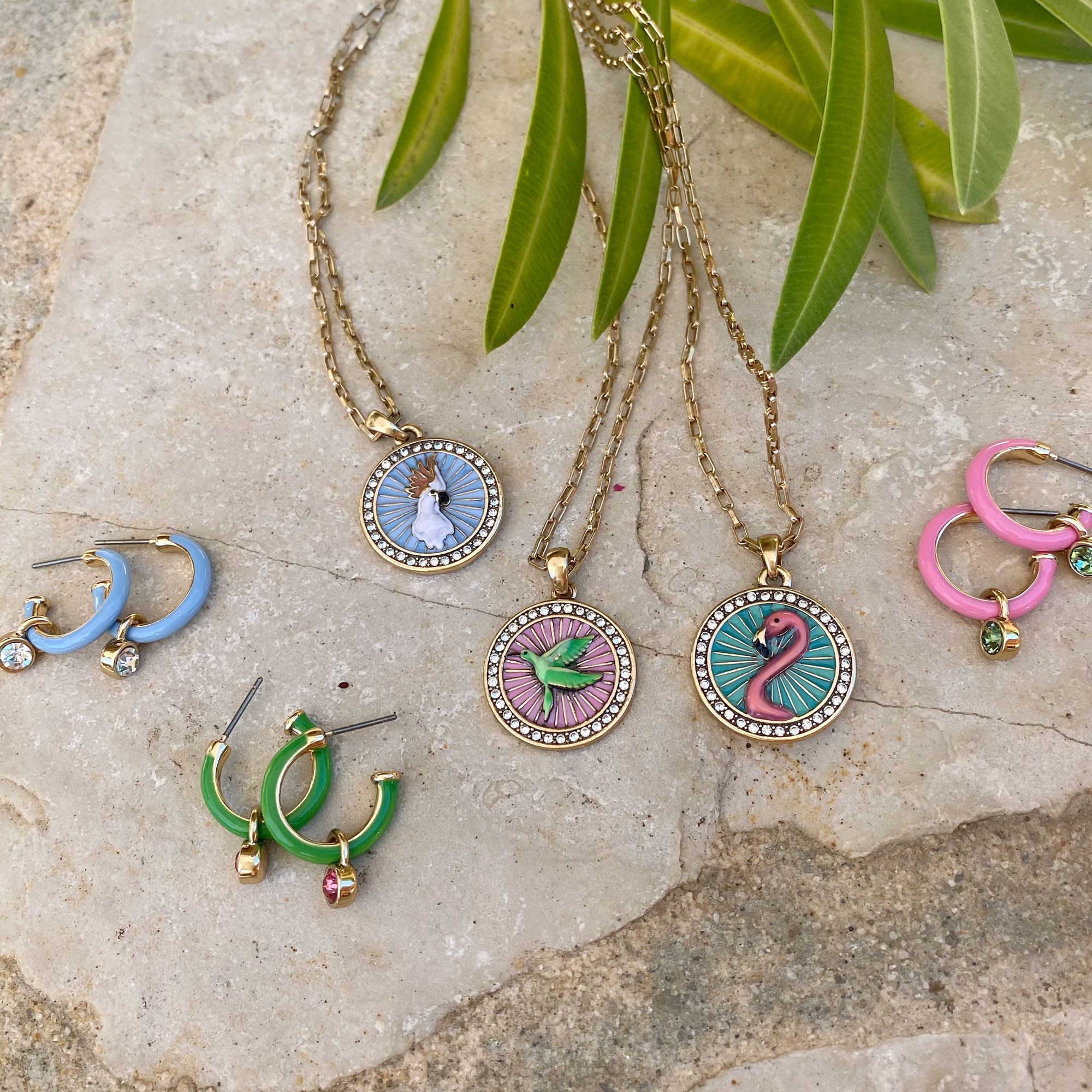 В этих украшениях есть что-то особенное. Эти монеты украшены словами: «остановись, наблюдай, прими, отпусти». Если вы чувствуете себя неловко, постарайтесь остановиться и понаблюдать за происходящим, а затем принять, что все так, как оно есть, не пытаясь что-либо изменить — и просто отпустить. Просто почувствуй облегчение. Хорошее напоминание носить с собой каждый день. Сверкающие кристаллы в сочетании с грубым рельефным текстом придают коллекции ощущение непринужденной элегантности.