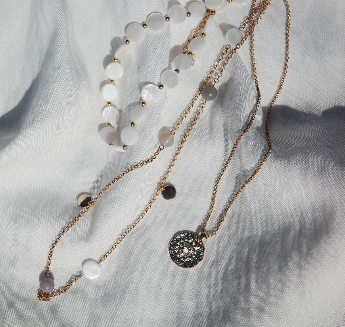 Колье, перламутр, халцедон, ювелирное стекло