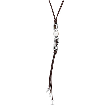Колье, жемчуг, кожа