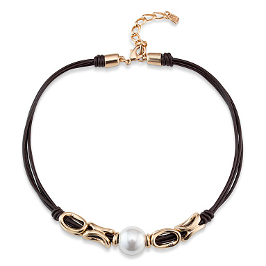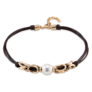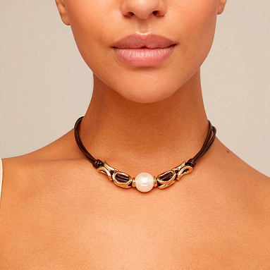Колье, жемчуг, кожа