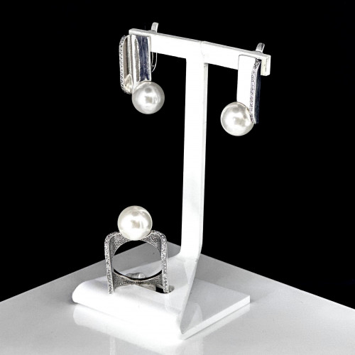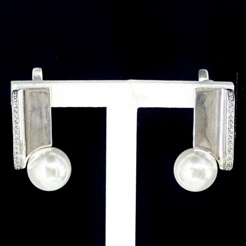 Серьги, жемчуг майорка, фианит