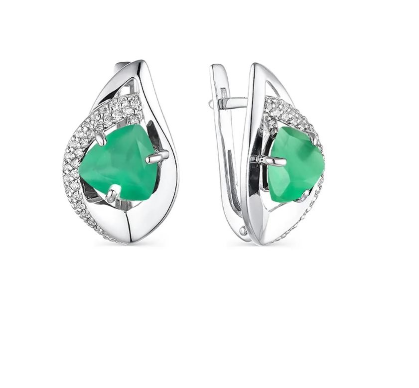 Серьги, фианит, хризопраз