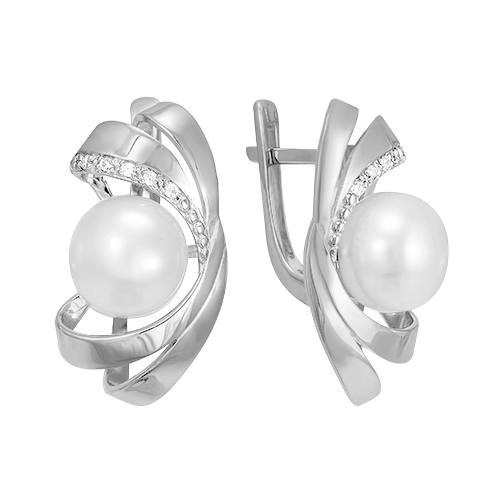 Серьги, жемчуг, фианит
