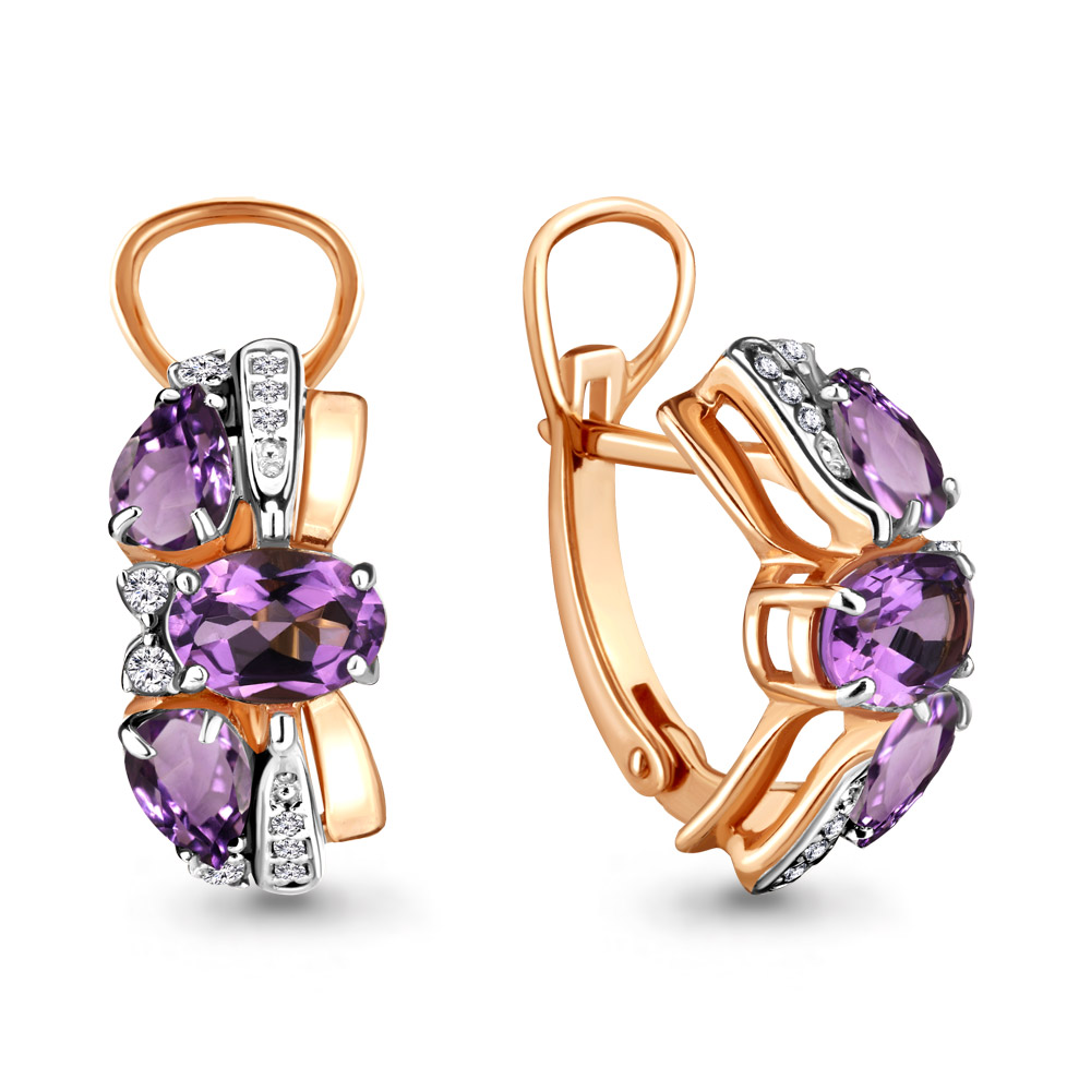 Серьги, аметист, фианит
