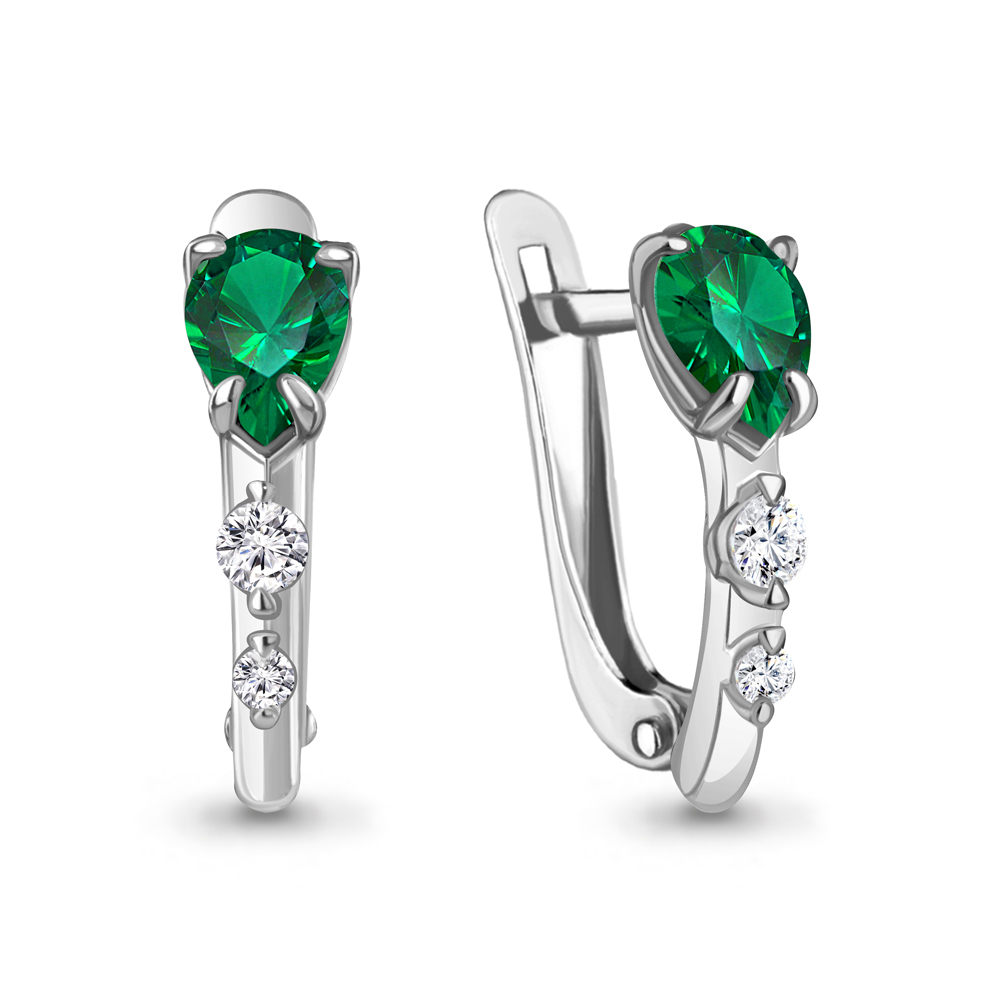 Серьги, наноизумруд, фианит