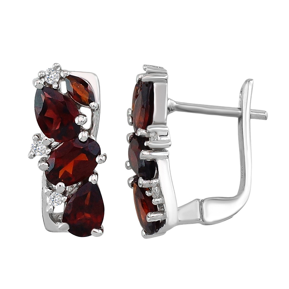 Серьги, гранат, фианит