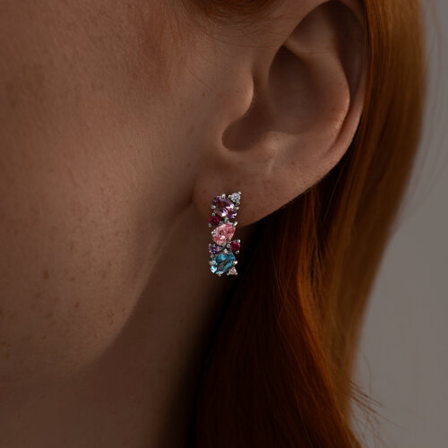 Серьги, аметист, корунд рубин синт., топаз, фианит