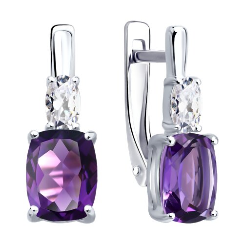 Серьги, аметист, фианит