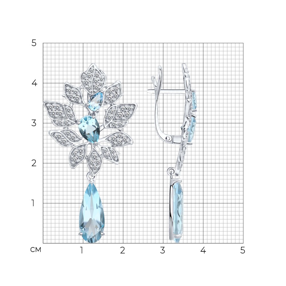 Серьги, топаз, фианит