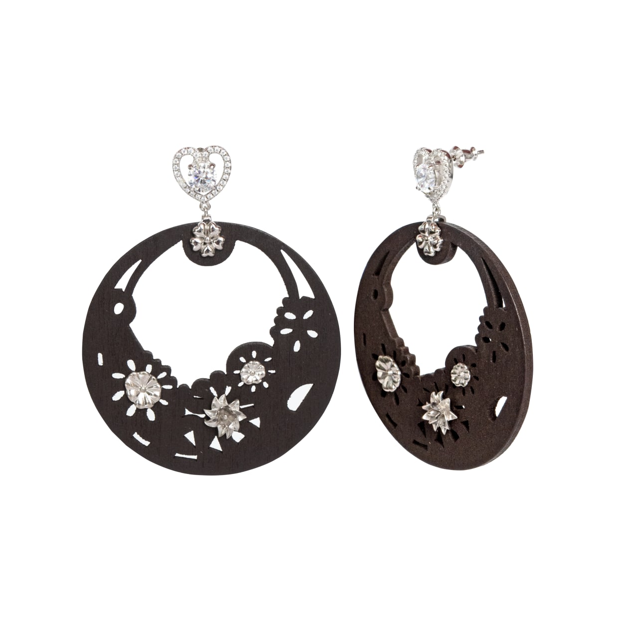 Серьги, дерево, кубический цирконий