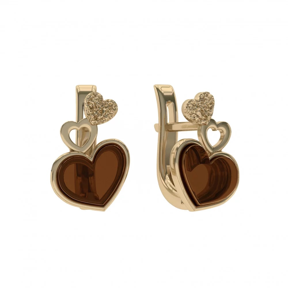 Дизайнерские серьги E9170ZK из серебра 925 пробы, покрытие золочение с натуральным янтарем